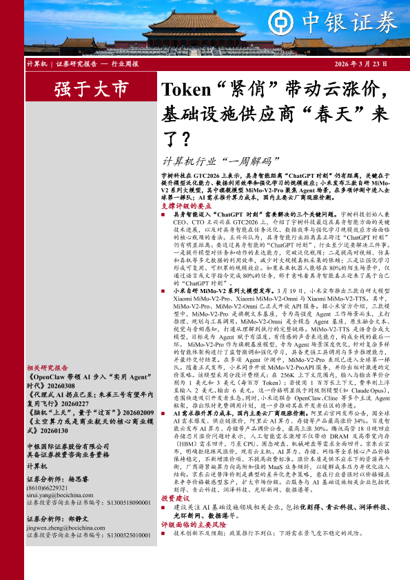 【中银证券】【202603】Token“紧俏”带动云涨价,基础设施供应商“春天”来-10页