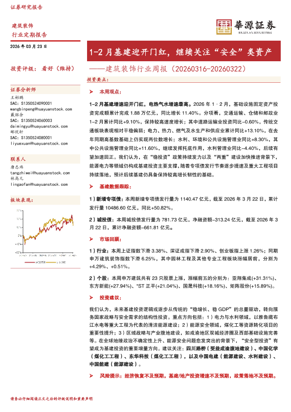 【华源证券】【202603】1-2月基建迎开门红,继续关注“安全”类资产——建筑装饰行业周报(20260316-20260322)-10页
