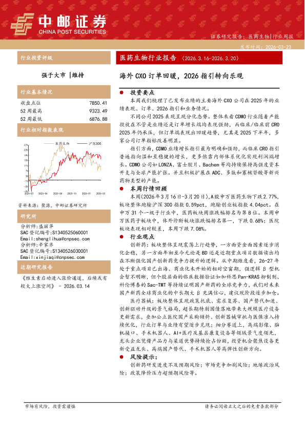 【中邮证券】【202603】医药生物行业报告:海外CXO订单回暖,2026指引转向乐观-19页
