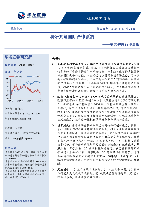 【华龙证券】【202603】科研共筑国际合作新篇——美容护理行业周报-10页