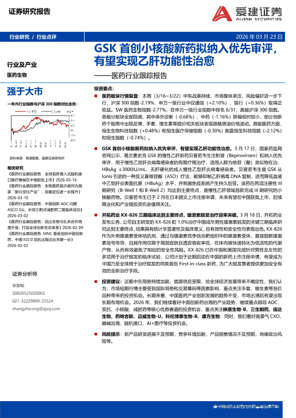 【爱建证券】【202603】医药行业跟踪报告:GSK首创小核酸新药拟纳入优先审评,有望实现乙肝功能性治愈-2页