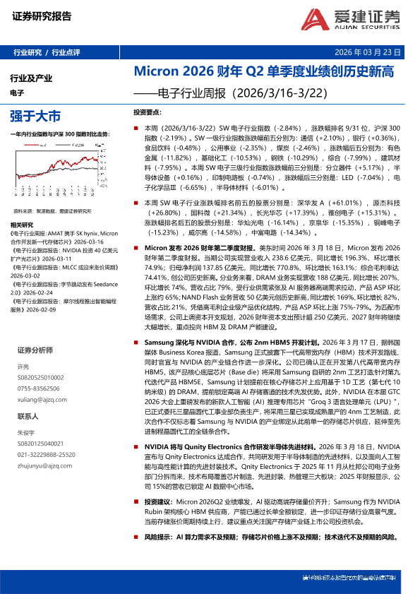 【爱建证券】【202603】电子行业周报:Micron 2026财年Q2单季度业绩创历史新高-8页