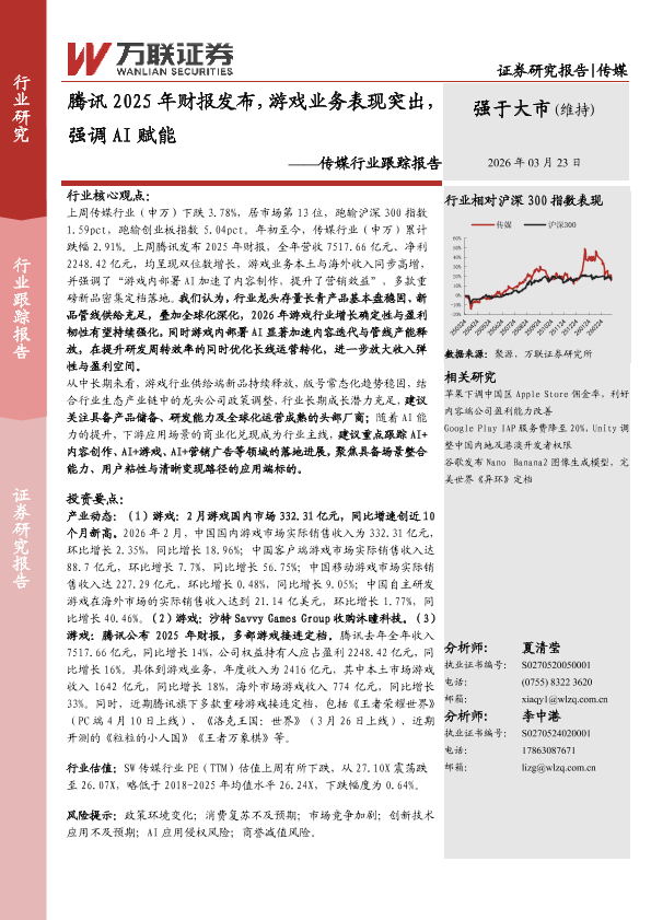 【万联证券】【202603】腾讯 2025年财报发布,游戏业务表现突出,强调 AI赋能-6页