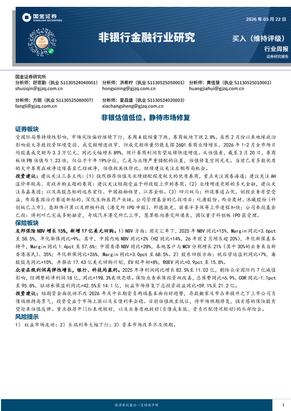 【国金证券】【202603】非银行金融行业研究:非银估值低位,静待市场修复-10页