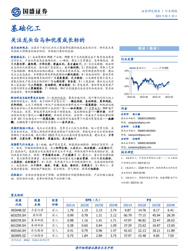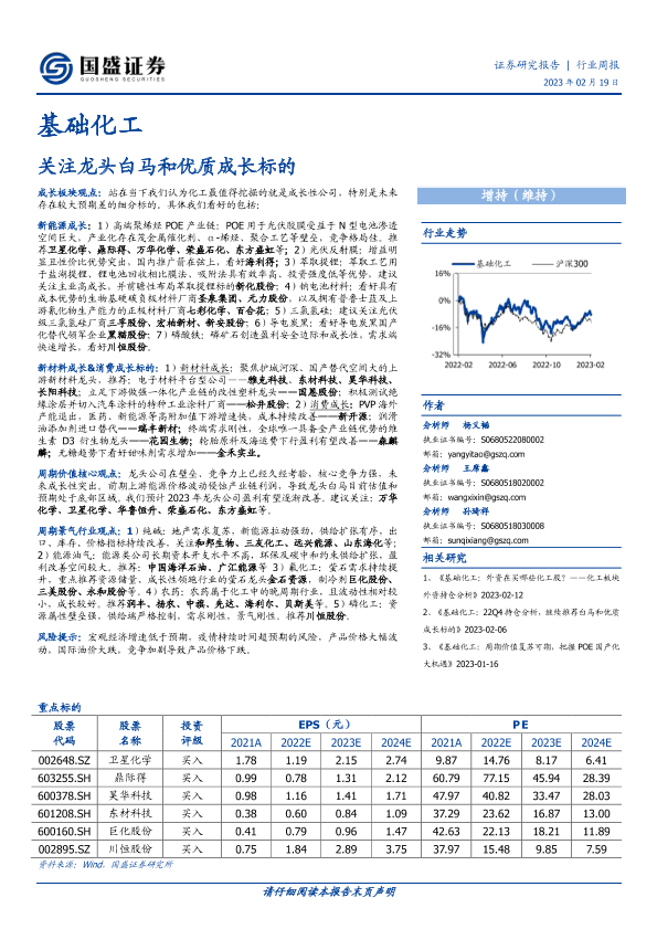 【国盛证券】【20230219】基础化工行业周报:关注龙头白马和优质成长标的-23页
