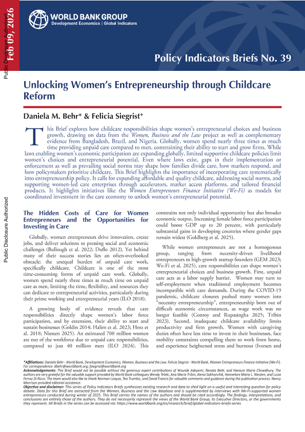 【World Bank】【2024】Unlocking Women’s Entrepreneurship through Childcare Reform-6页
