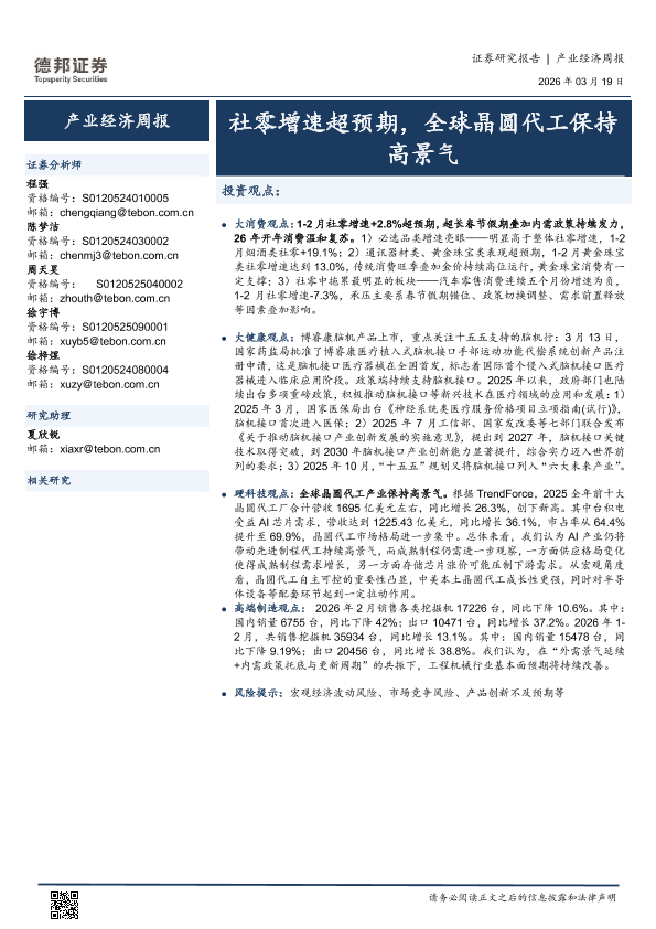 【德邦证券】【202603】产业经济周报:社零增速超预期,全球晶圆代工保持高景气-12页