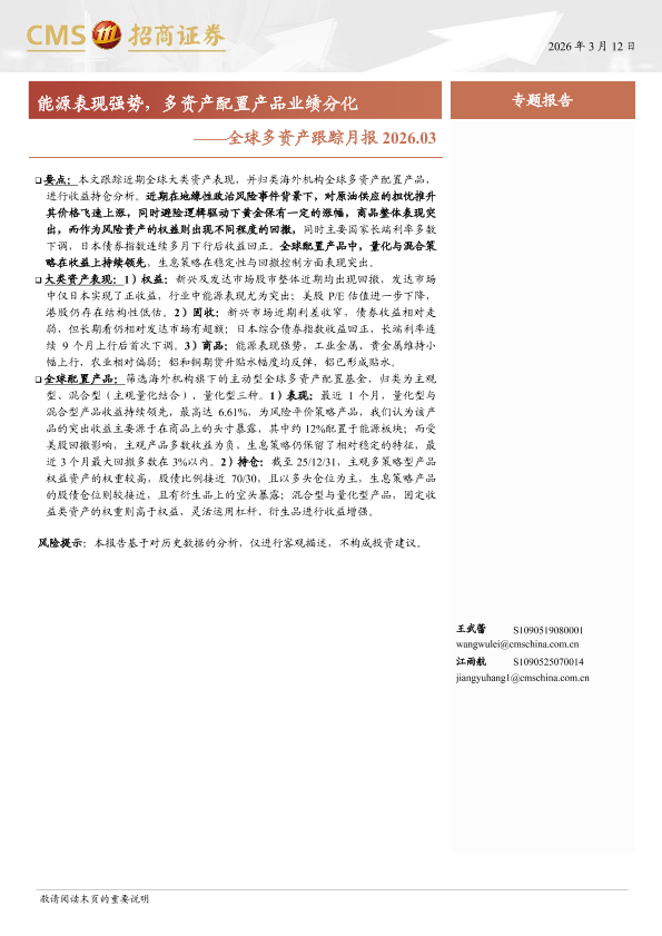 【海通证券】【202603】能源表现强势,多资产配置产品业绩分化——全球多资产跟踪月报 2026.03-15页