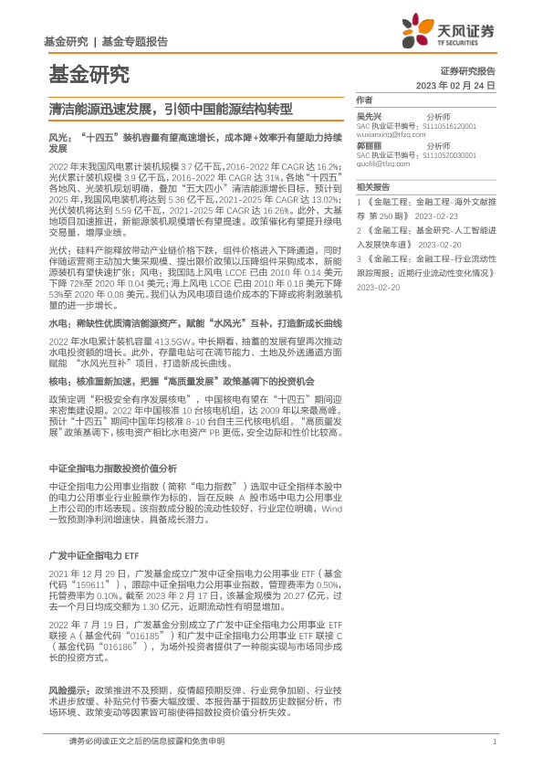 【天风证券】【20230224】基金研究:清洁能源迅速发展,引领中国能源结构转型-23页