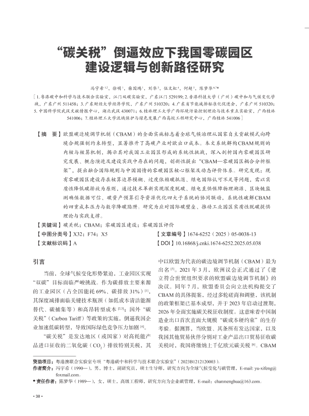 【冯宇希&徐明&柴国鸿&刘华&伍文虹&何超&陈梦华】【2023】“石碳关税”倒逼效应下我国零碳园区建设逻辑与创新路径研究-13页