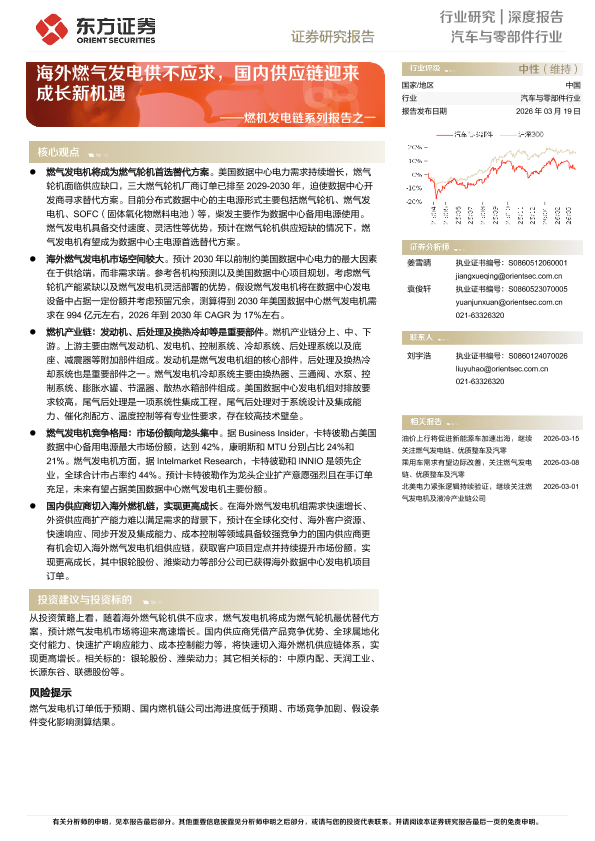 【东方证券】【202603】汽车与零部件行业深度报告 ——海外燃气发电供不应求,国内供应链迎来成长新机遇-22页