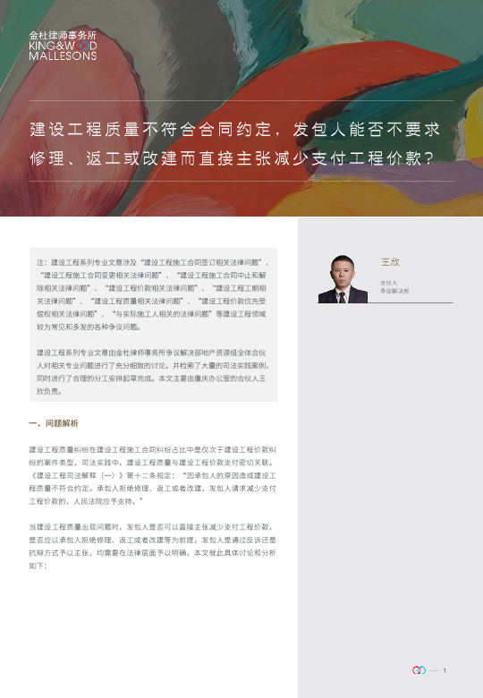 【王欣】【2026】建设工程质量不符合合同约定,发包人能否不要求修理、返工或改建而直接主张减少支付工程价款?-4页
