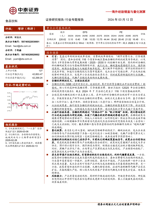 【中泰证券】【202603】糖税风起,软饮行业潜在影响几何?-10页