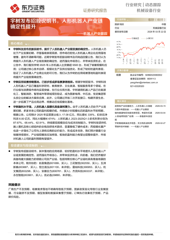 【东方证券】【202603】机械设备行业动态跟踪 ——宇树发布招股说明书,人形机器人产业链确定性提升-4页