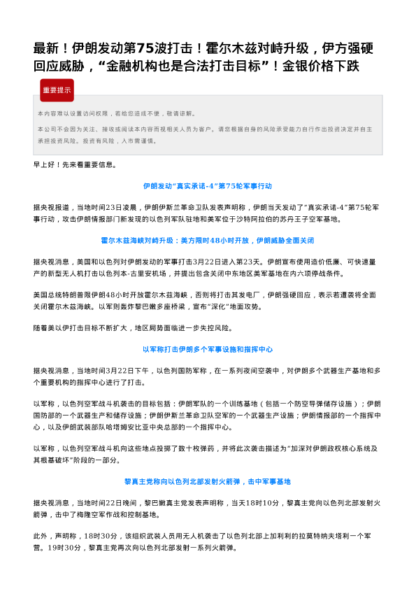 【瑞达期货】【202403】伊朗发动第75波打击!霍尔木兹对峙升级,伊方强硬回应威胁,“金融机构也是合法打击目标”!金银价格下跌-4页