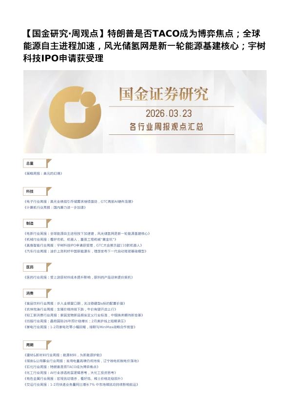 【国金证券】【202603】特朗普是否TACO成为博弈焦点;全球能源自主进程加速,风光储氢网是新一轮能源基建核心;宇树科技IPO申请获受理-6页