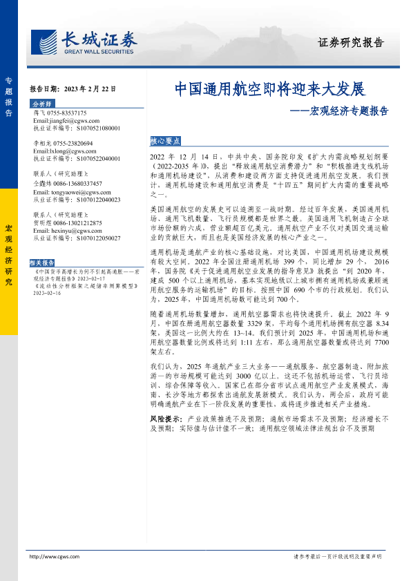 产业发展 宏观经济 机场建设 消费潜力 通用航空