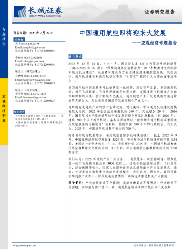 【长城证券】【20230222】中国通用航空即将迎来大发展-17页