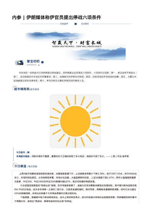 【长城证券】【202603】伊朗媒体称伊官员提出停战六项条件-3页