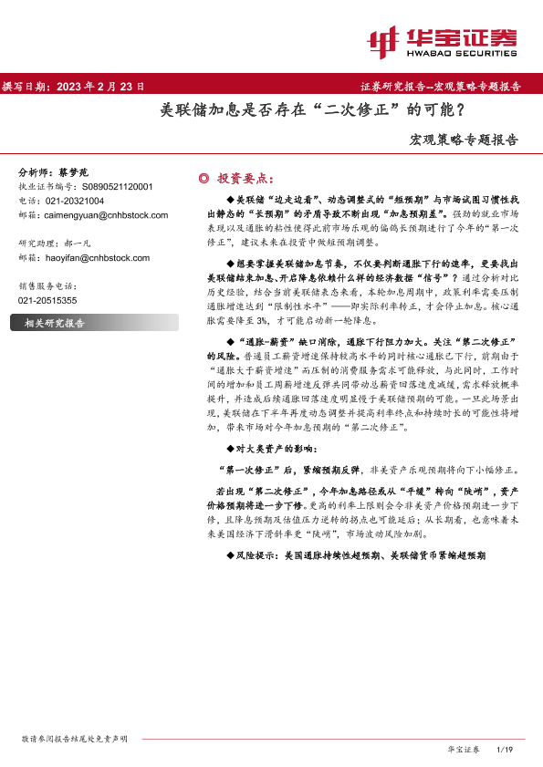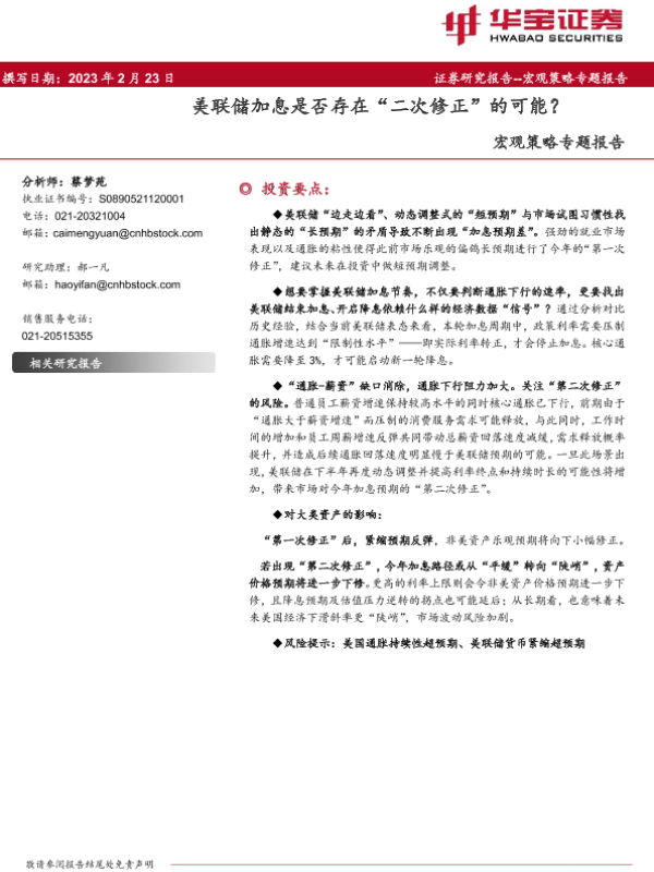【华宝证券】【20230223】宏观策略专题报告:美联储加息是否存在“二次修正”的可能?-19页