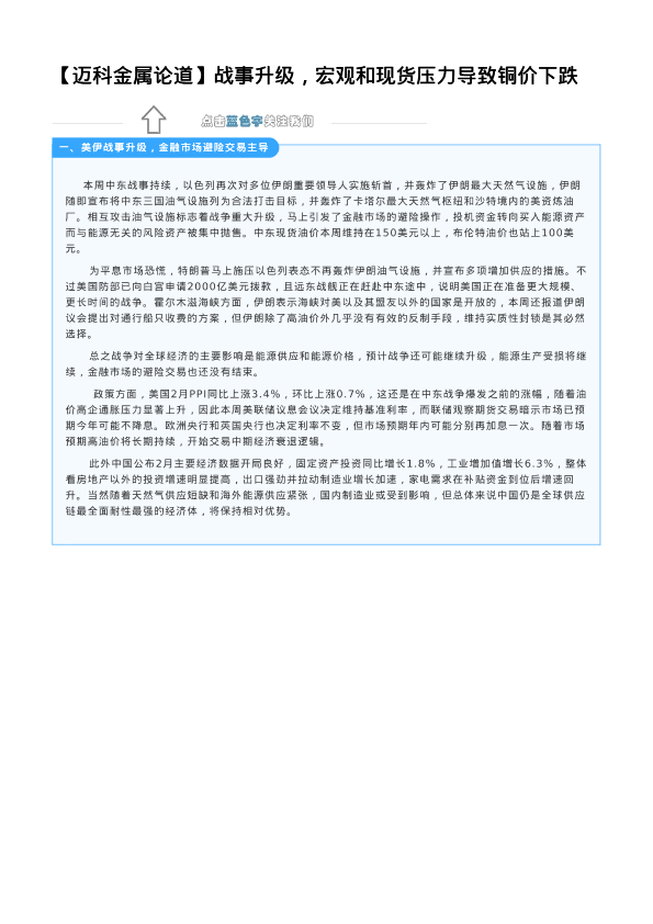 【迈科期货】【202303】战事升级,宏观和现货压力导致铜价下跌-2页