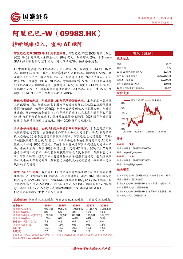 阿里巴巴 云业务 AI矩阵 财报分析 即时零售