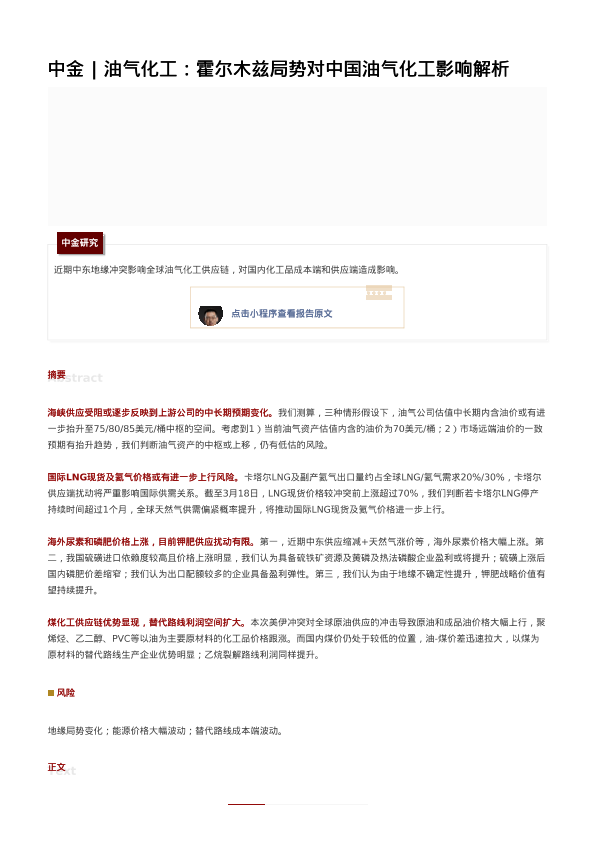【中金公司】【202603】霍尔木兹局势对中国油气化工影响解析-14页