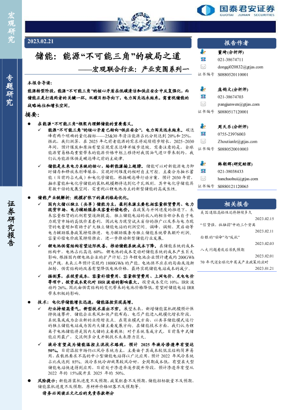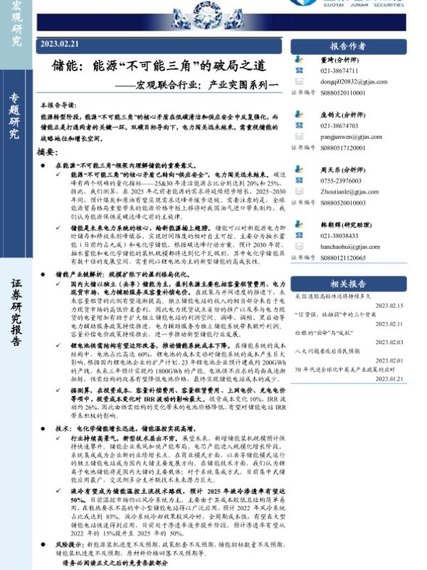 【国泰君安证券】【20230221】储能:能源“不可能三角”的破局之道-22页