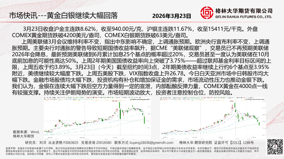 【格林大华期货】【202603】市场快讯_黄金白银继续大幅回落-1页