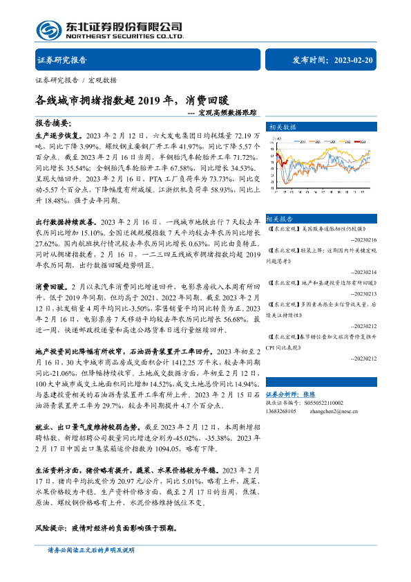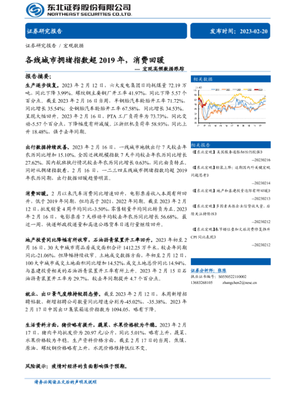 【东北证券】【20230220】宏观高频数据跟踪:各线城市拥堵指数超2019年,消费回暖-31页