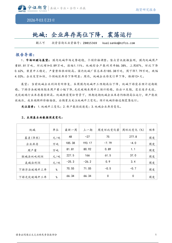 【宁证期货】【202603】纯碱:企业库存高位下降,震荡运行-5页