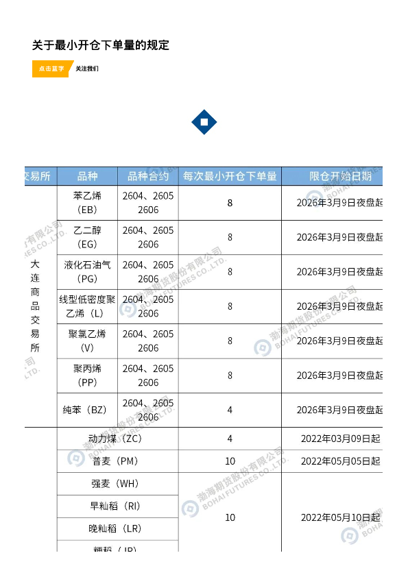 【渤海期货股份有限公司】【2025】关于最小开仓下单量的规定-3页