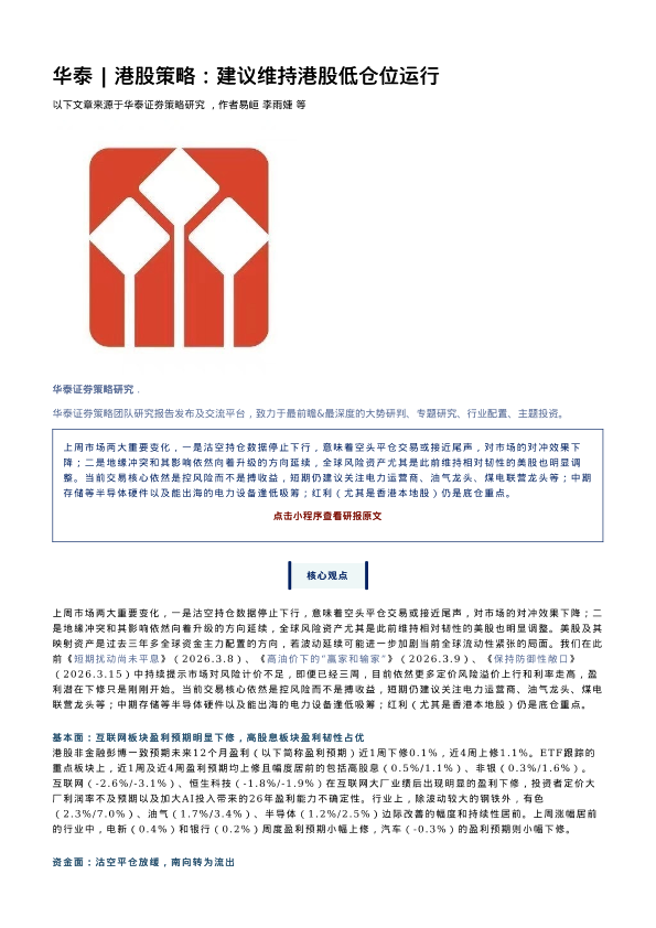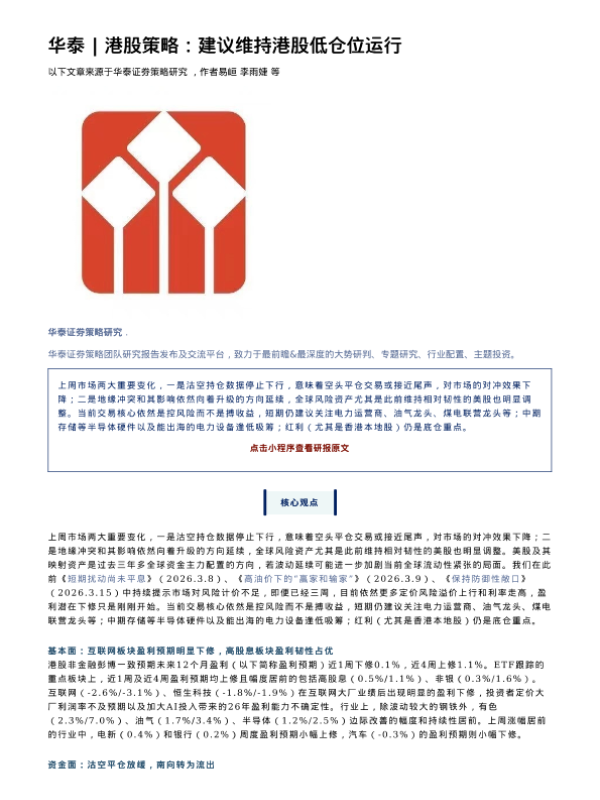 【华泰证券】【202603】建议维持港股低仓位运行-26页