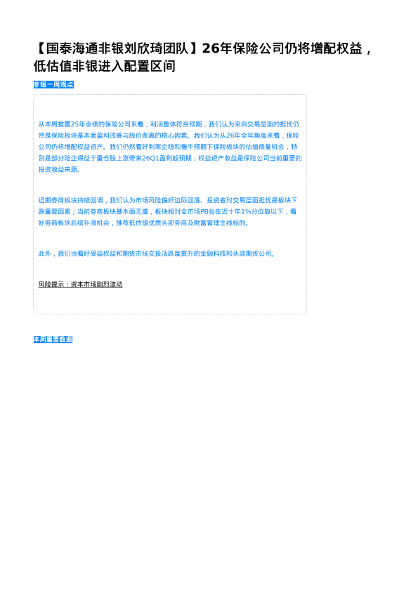 【国泰海通非银刘欣琦团队】【202603】26年保险公司仍将增配权益,低估值非银进入配置区间-3页