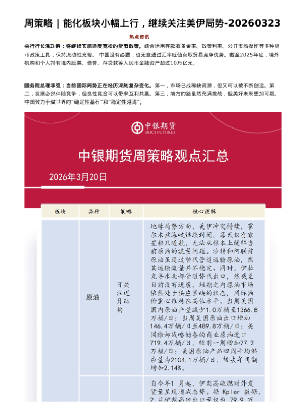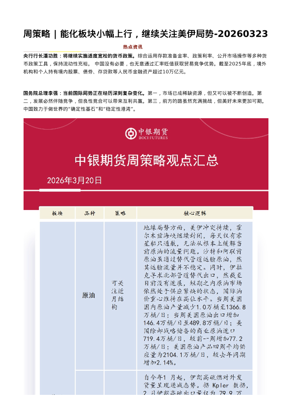 【中银国际期货有限责任公司】【202603】能化板块小幅上行,继续关注美伊局势-7页