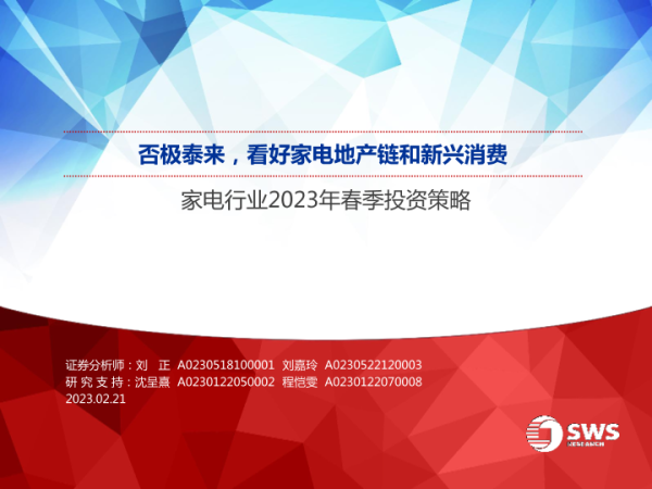 【申万宏源】【20230221】家电行业2023年春季投资策略:否极泰来,看好家电地产链和新兴消费-45页