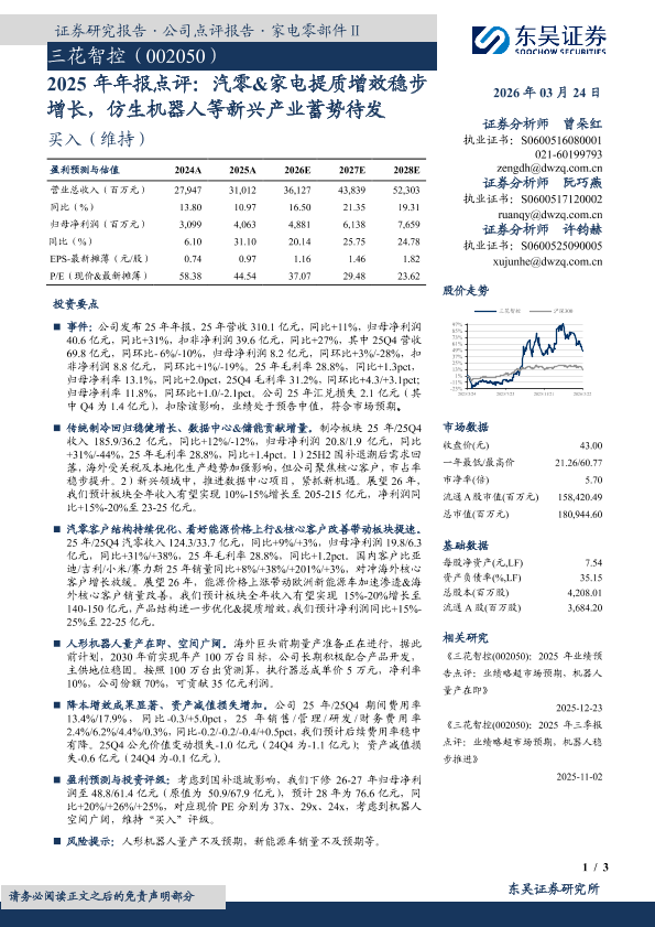 【东吴证券】【202603】2025年年报点评:汽零&家电提质增效稳步增长,仿生机器人等新兴产业蓄势待发-3页