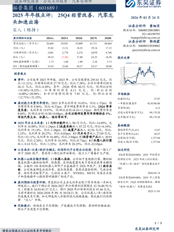 【东吴证券】【202603】2025年年报点评:25Q4经营改善,汽零龙头加速出海-3页