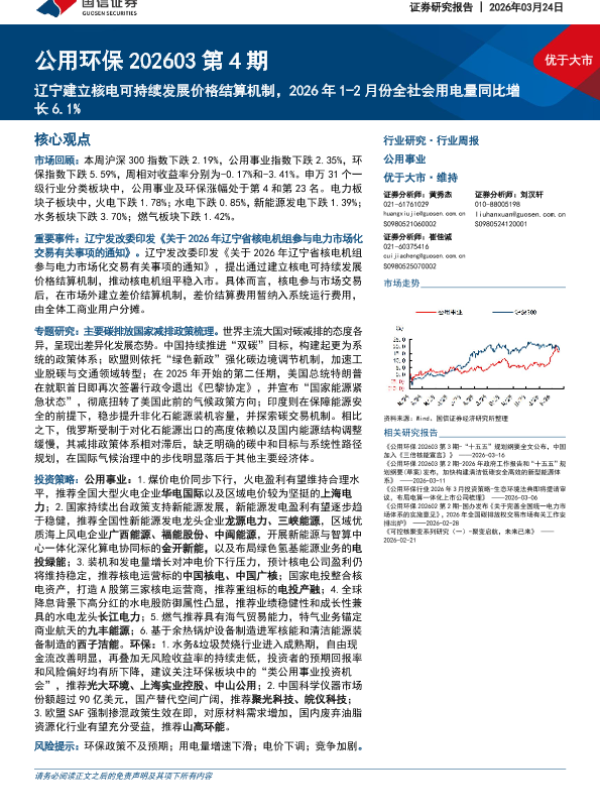 【国信证券】【202603】辽宁建立核电可持续发展价格结算机制,2026年1-2月份全社会用电量同比增长6.1%-29页