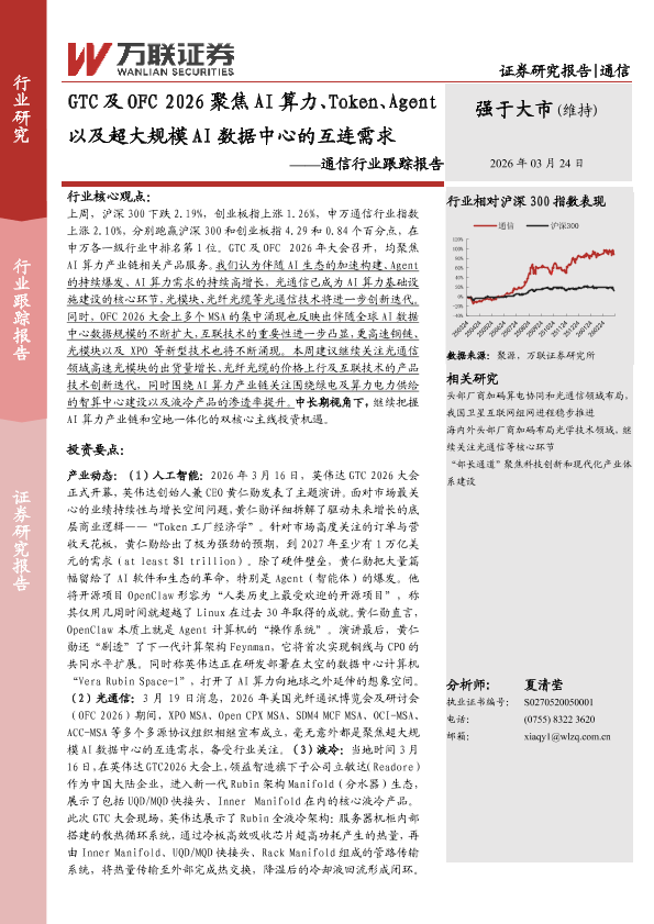 【万联证券】【202603】GTC及 OFC 2026聚焦 AI算力、Token、Agent 以及超大规模 AI数据中心的互连需求-8页