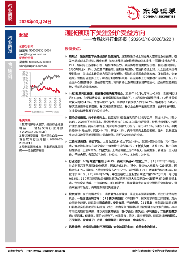 【东海证券】【202603】通胀预期下关注涨价受益方向——食品饮料行业周报(2026/3/16-2026/3/22)-11页