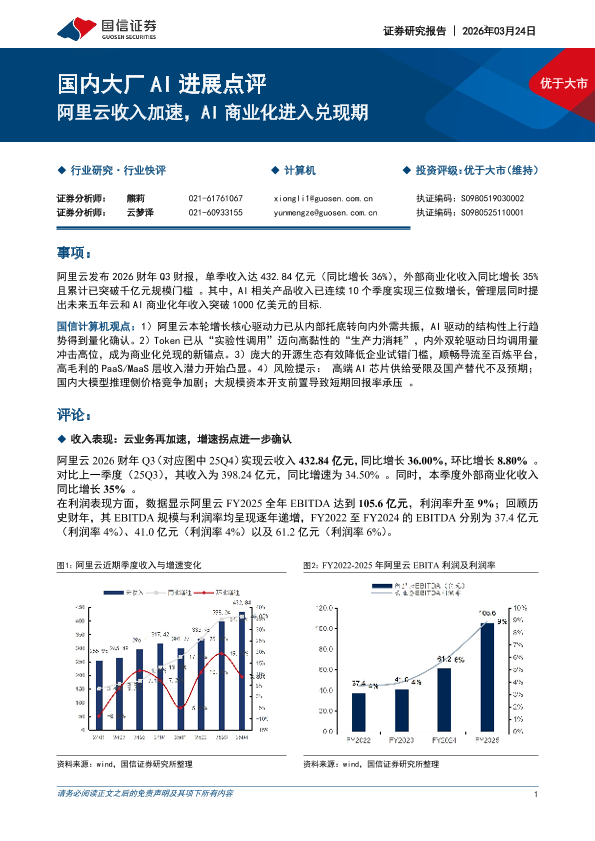 【国信证券】【202603】国内大厂AI进展点评-阿里云收入加速,AI商业化进入兑现期-7页
