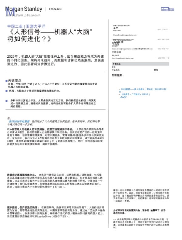 【Morgan Stanley】【202601】人形信号——机器人“大脑”将如何进化?-15页