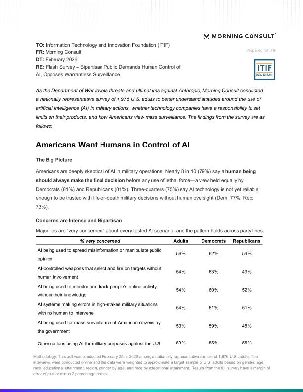【Morning Consult】【202602】Bipartisan Public Demands Human Control of AI, Opposes Warrantless Surveillance-3页