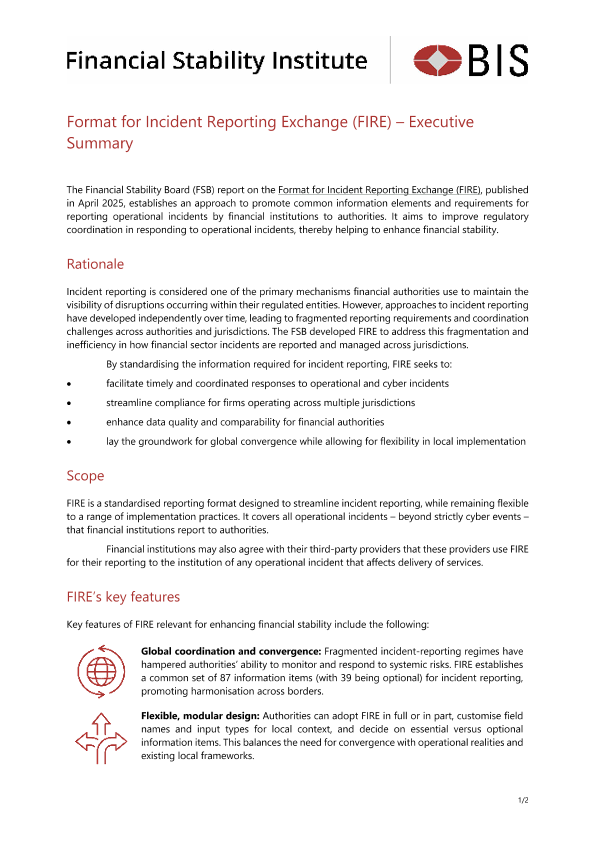 【Financial Stability Board(FSB)】【202504】Format for Incident Reporting Exchange(FIRE) - Executive Summary-2页