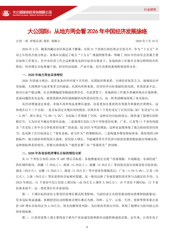 【大公国际】【202603】从地方两会看2026年中国经济发展脉络-5页