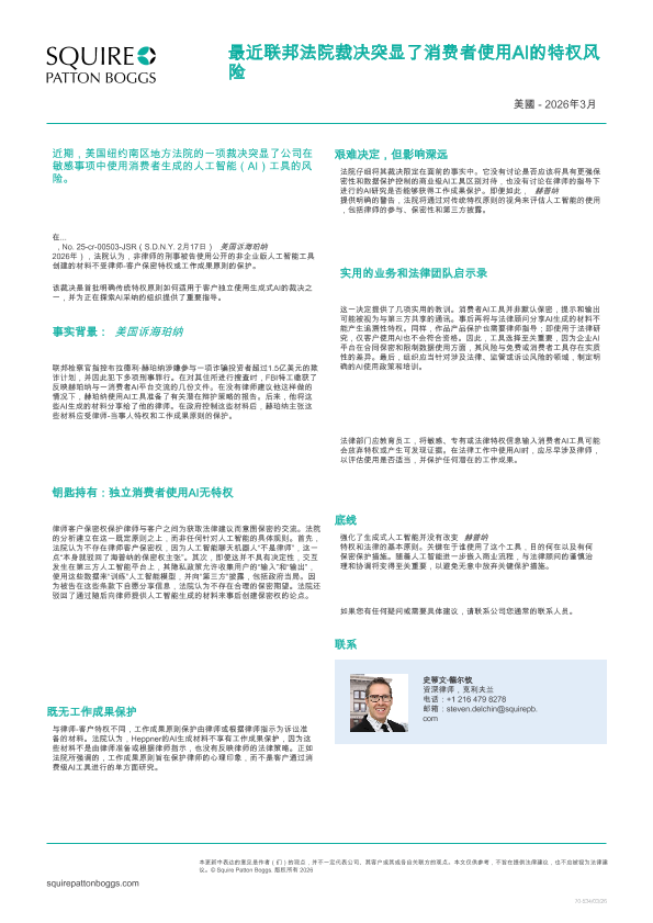【翰宇国际律师事务所】【2024】联邦法院最近的裁决突显了消费者使用人工智能的特权风险-1页