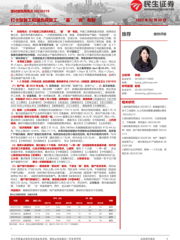 【民生证券】【20230220】建材建筑周观点:打卡型复工和满负荷复工,“基”“房”有别-26页
