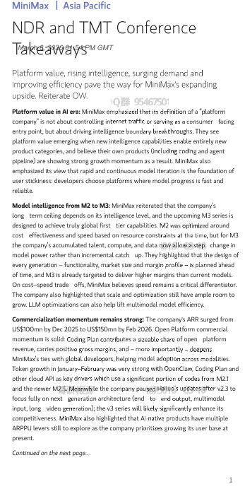 【Morgan Stanley】【2026】MiniMax亚太NDR及TMT会议要点-4页
