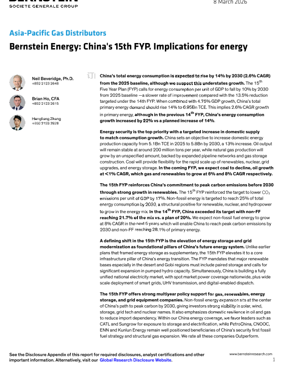 【Bernstein】【202603】China's new 15th Five Year Plan (FYP) - Implications for energy-14页